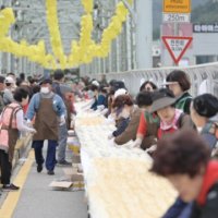 8일 공주시에 따르면 전날 금강철교에서 개최된 인절미 축제를 통해 ‘단일 장소에서 동시에 만들어진 가장 긴 인절미’ 부문 한국기록원 공식 최고 기록이 수립됐다. 공식 길이는 1624m다. 인절미 만들기에 사용된 찹쌀은 약 3t이며 참여 인원도 200명을 넘었다...